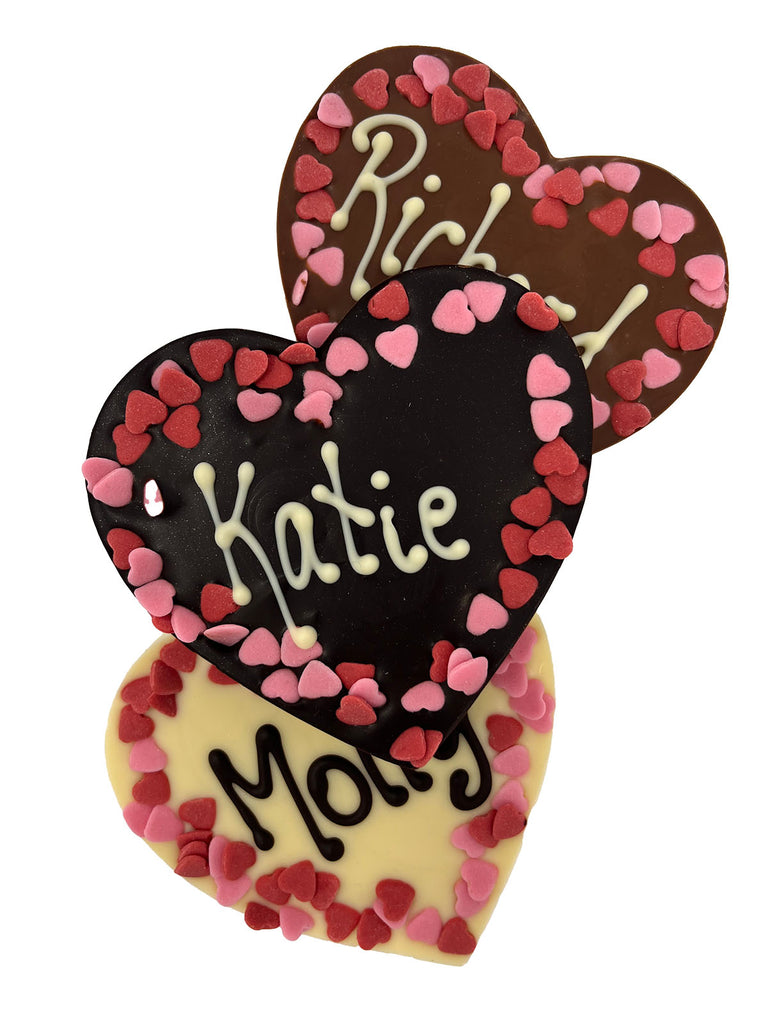 Personalised Handmade Solid Chocolate Hearts.